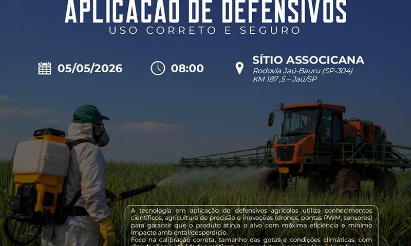 A ASSOCICANA em parceria com a ORPLANA realizará um treinamento sobre tecnologias e boas práticas na aplicação de defensivos agrícolas, com orientações sobre eficiência na aplicação, redução de desperdícios e menor impacto ambiental – Lei do Aplicador Legal.